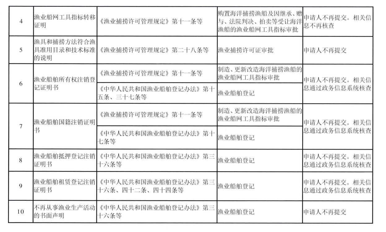(一)审批渔业船网工具指标、渔业捕捞许可证,不再审查申请人所属渔业组织的意见和企业法定代表人户籍。