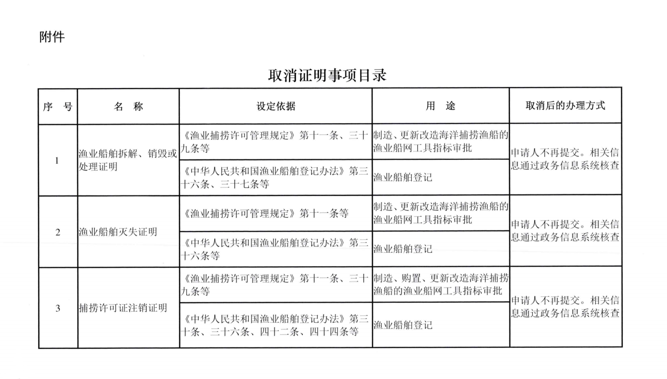 (一)审批渔业船网工具指标、渔业捕捞许可证,不再审查申请人所属渔业组织的意见和企业法定代表人户籍。